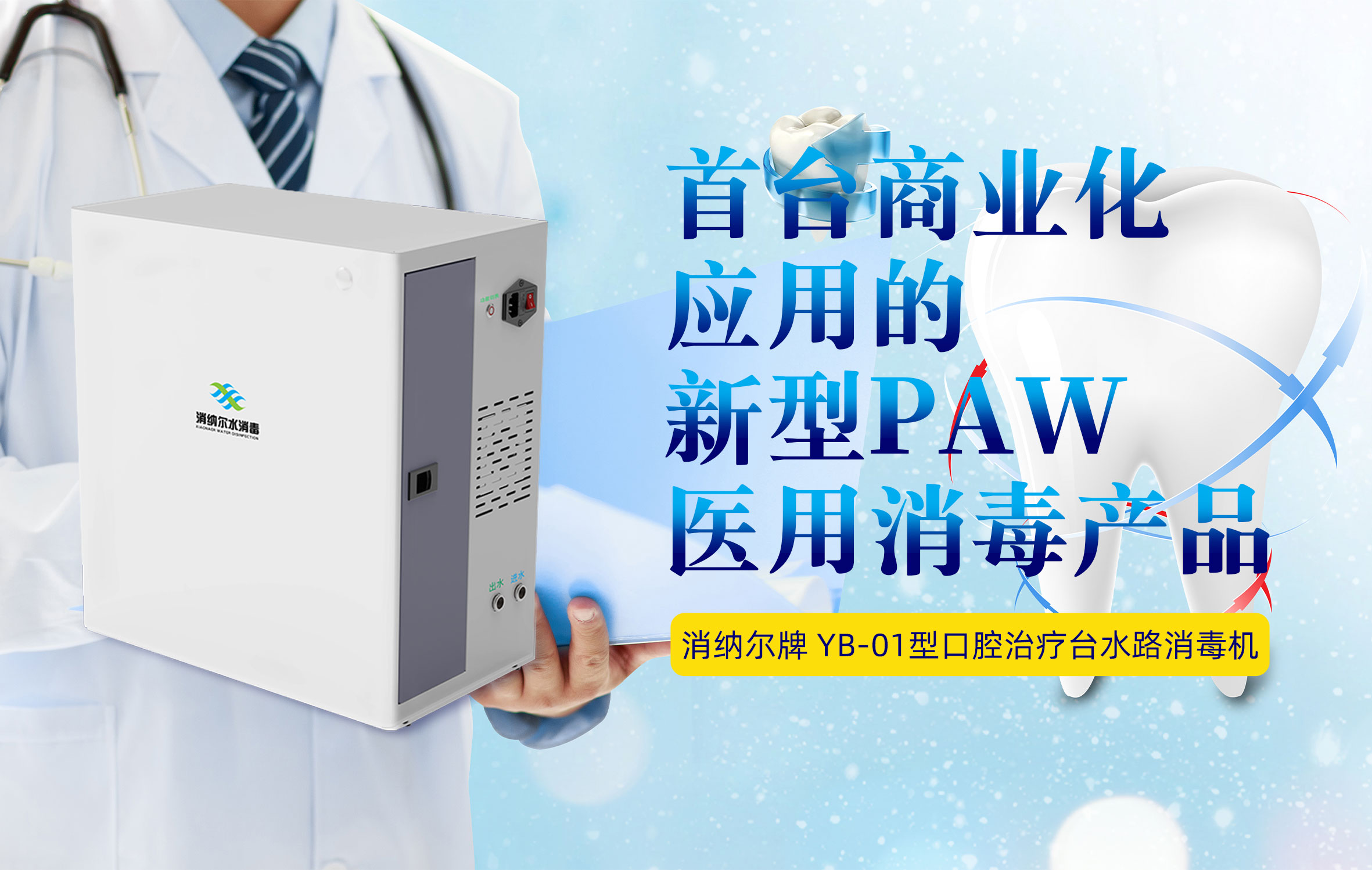 首臺商業(yè)化應用的新型 PAW 醫(yī)用消毒產(chǎn)品,消納爾牌口腔治療臺水路消毒機
